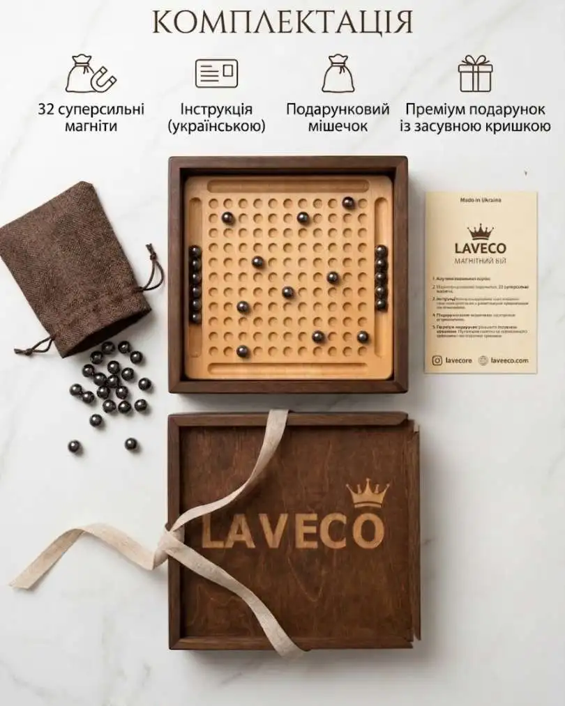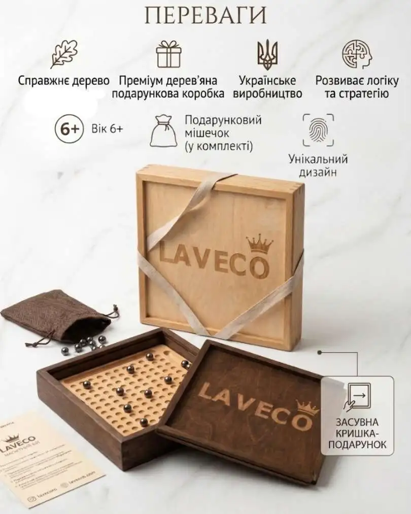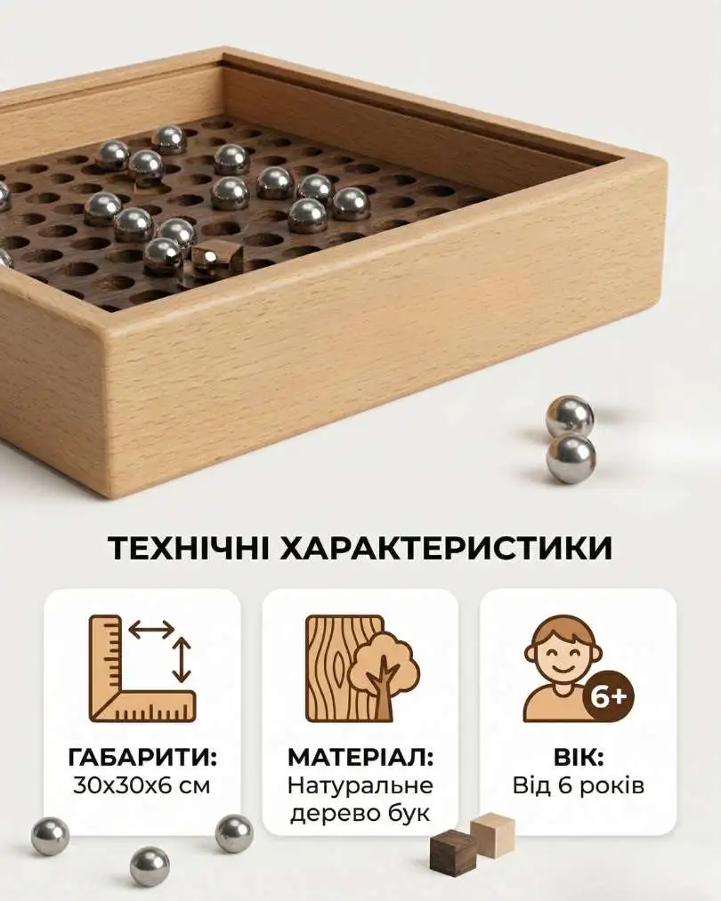 Матеріал: Гра виготовлена з натурального дерева буку.