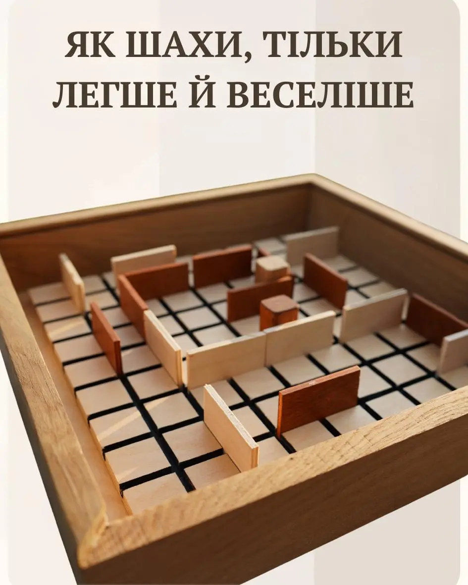 По черзі рухаєш фішку на одну клітинку.Або ставиш перегородку, щоб супернику було складніше пройти.